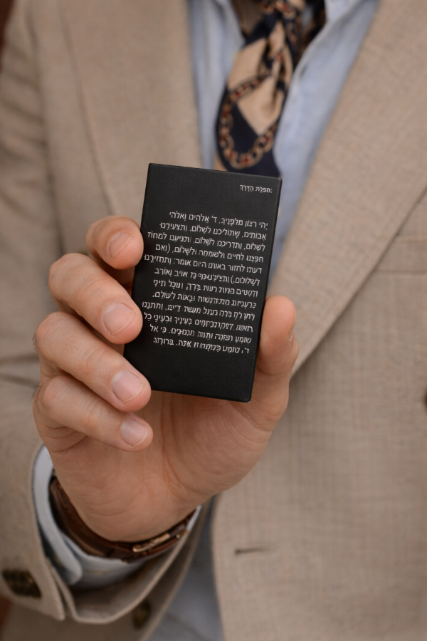 TARJETERO POP UP NEGRO CON TEFILAT HADEREJ EN HEBREO.