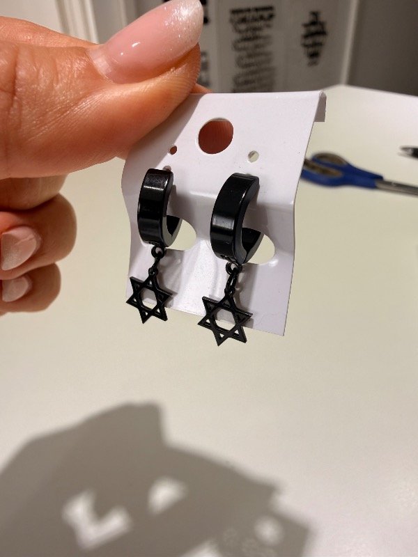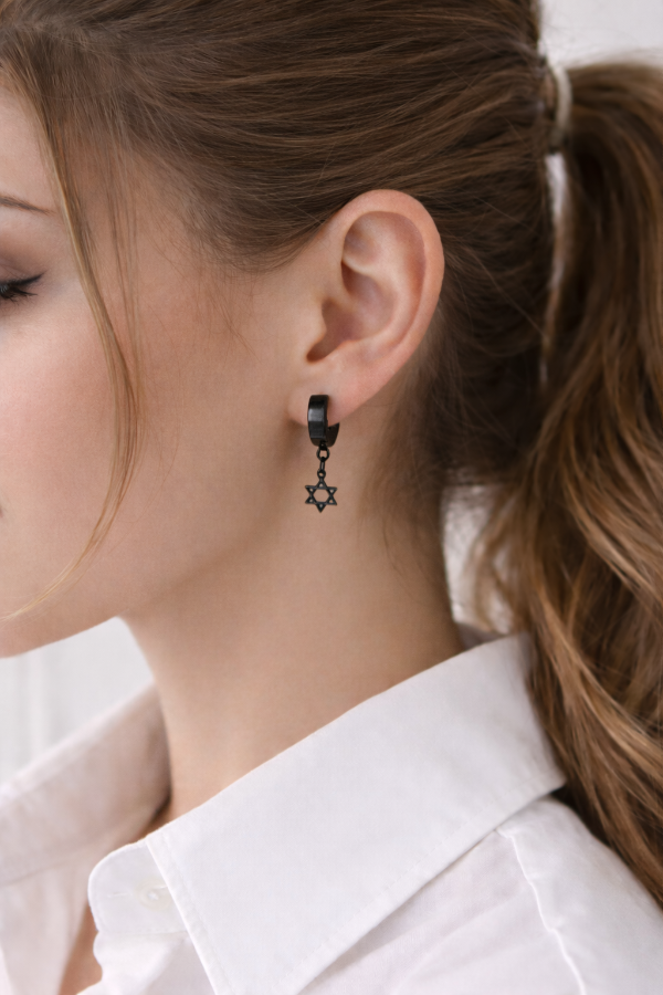 Par de aritos argolla con dije de Maguen David