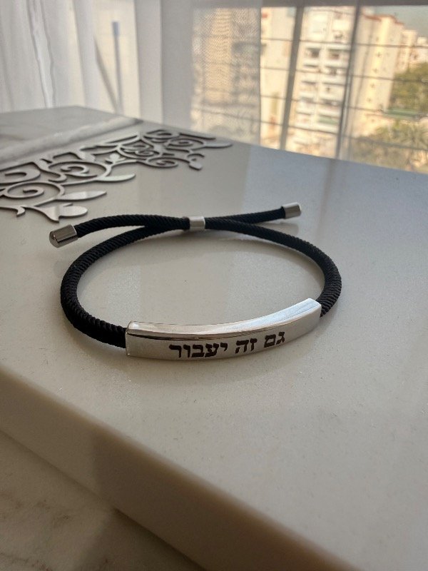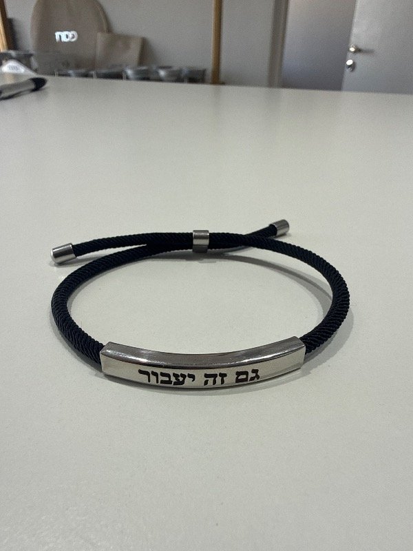 HERMOSA PULSERA de cordón negro con Dije en Acero Quirúrgico plateado con grabado GAM ZE YAABOR