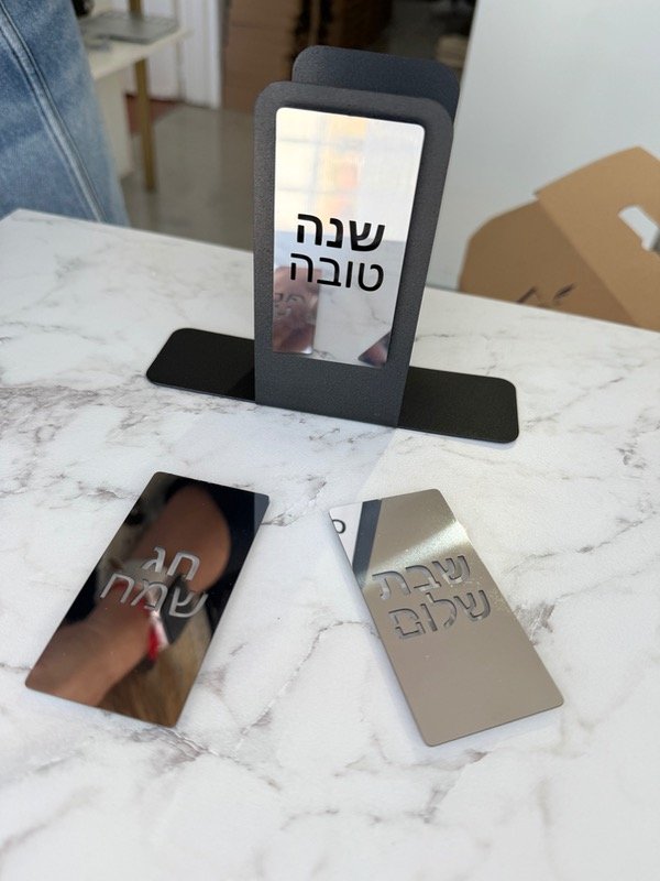 Servilleteros en metal negro con 3 imanes intercambiables en acero inoxidable espejado según la fecha en que lo uses: