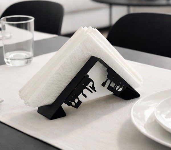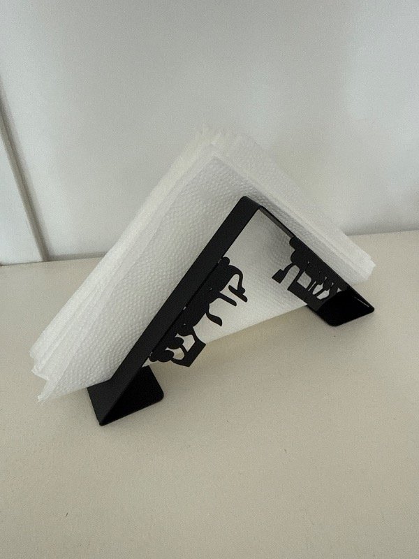 Servilleterocon diseño minimalista para Shabat en acero inoxidable NEGRO . 18X6X6CM