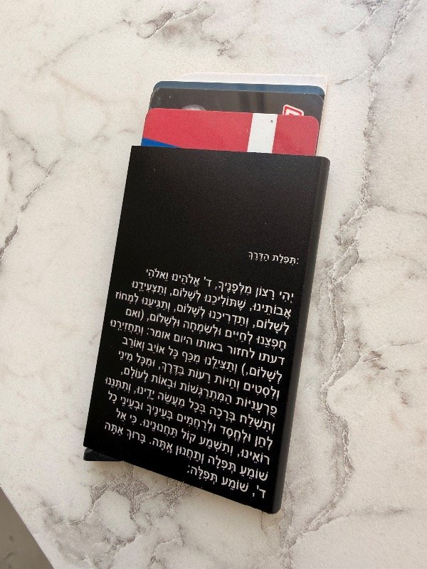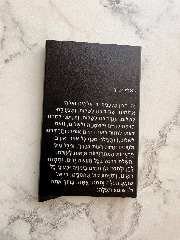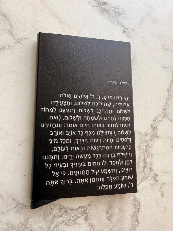 TARJETERO POP UP NEGRO CON TEFILAT HADEREJ EN HEBREO.