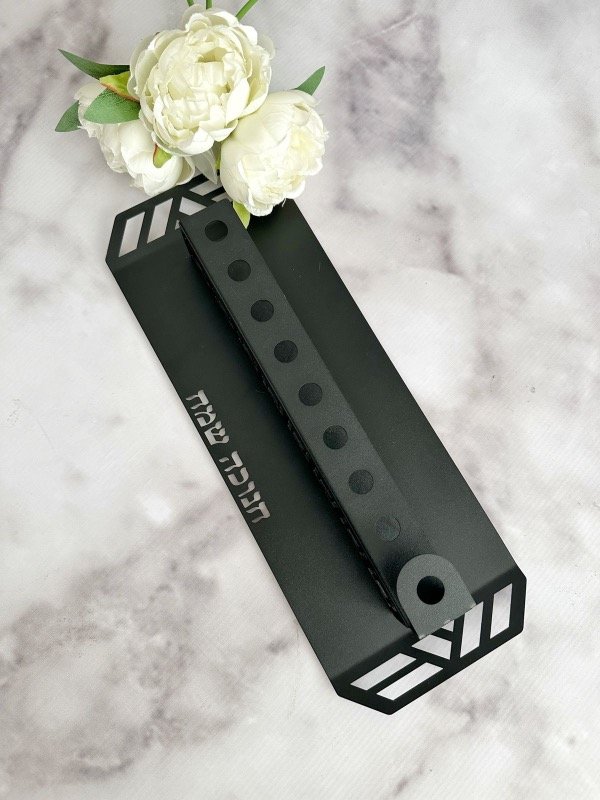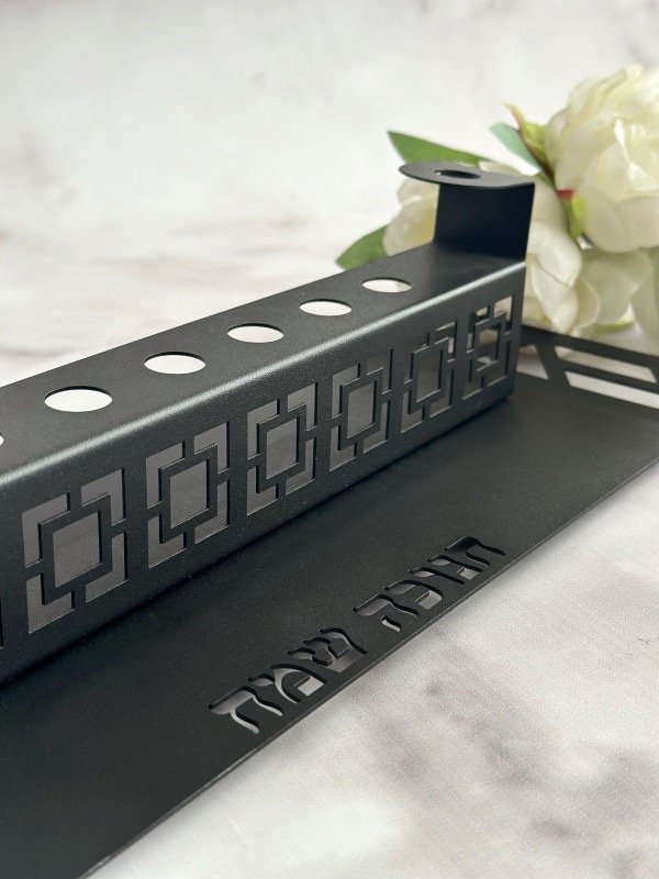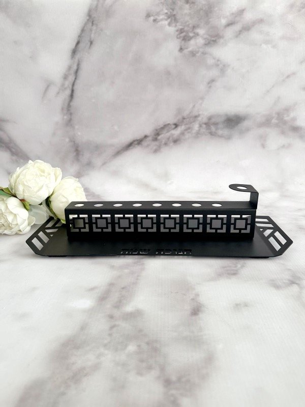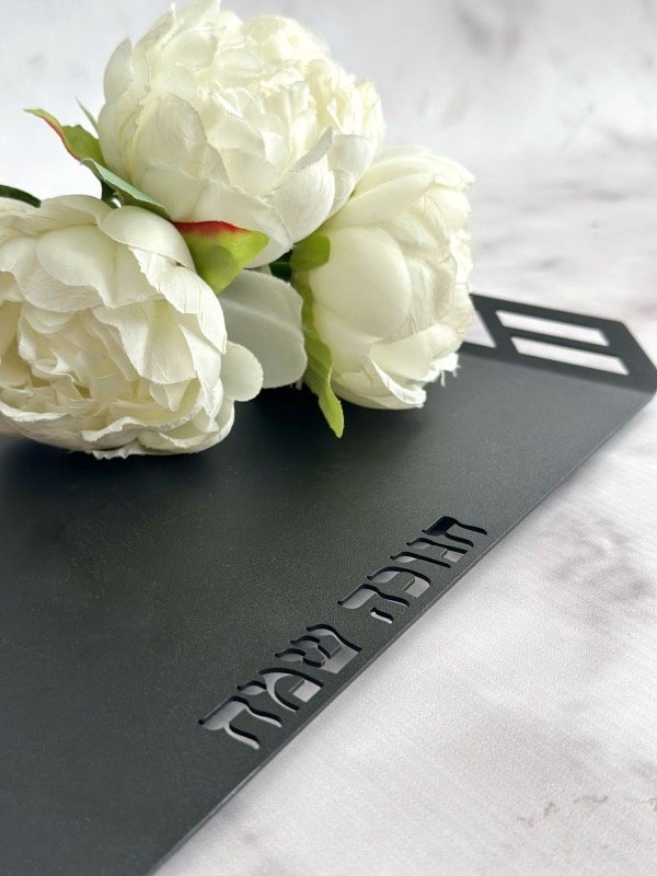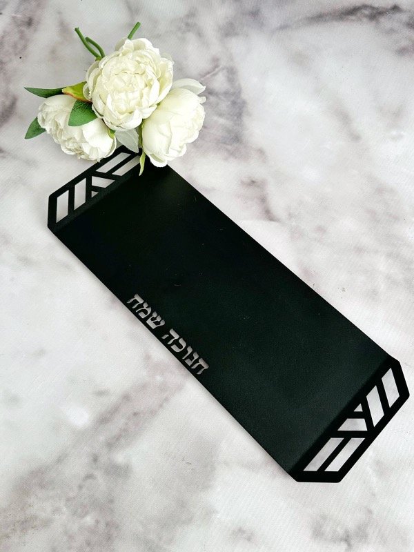 BANDEJA PARA APOYAR LA JANUKIA 15x40cm aprox . EN ACERO TEXTURADO NEGRO